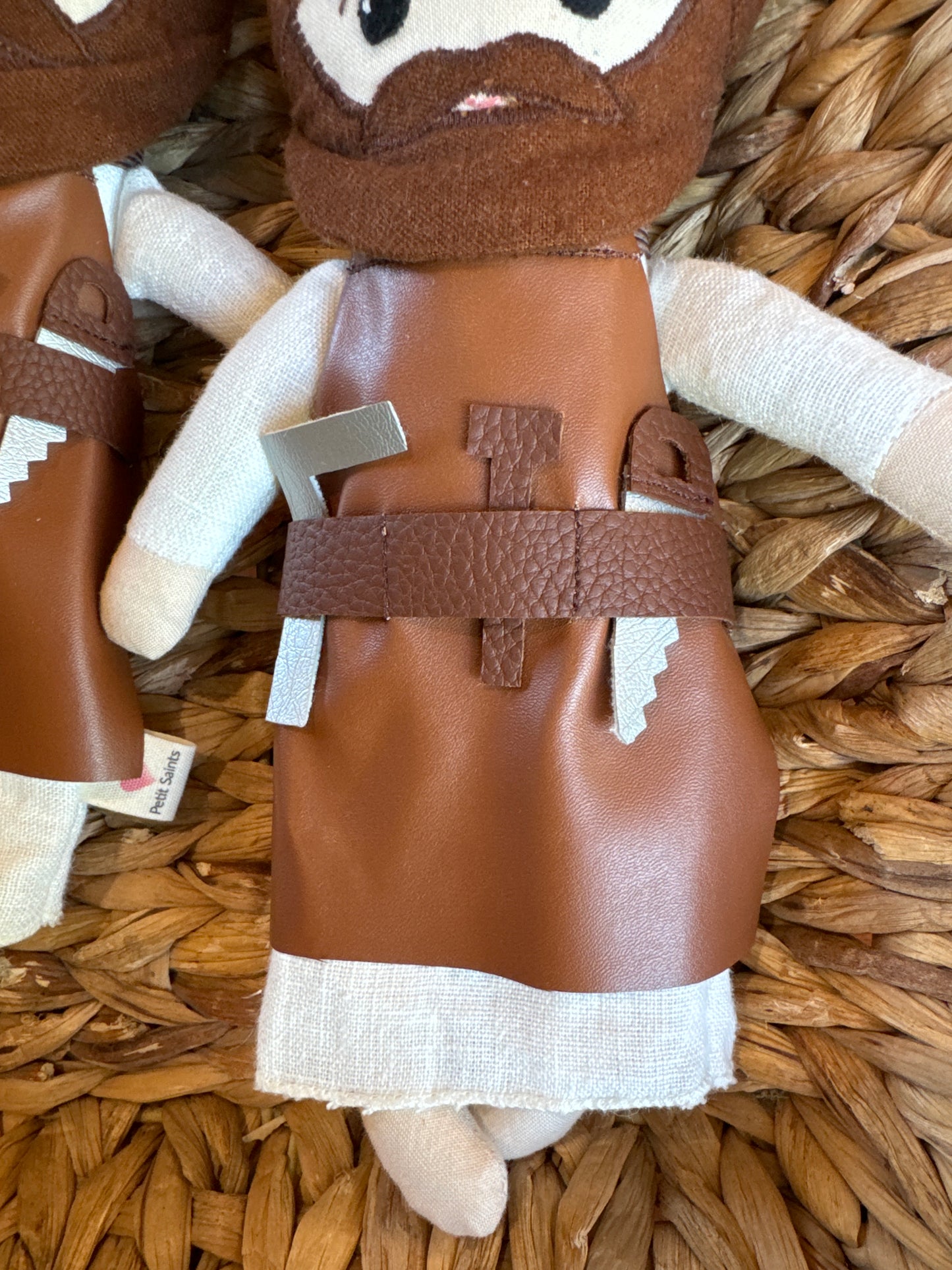 This St. Joseph doll serves as a meaningful representation of a revered Saint. Among his many attributes, he is the patron of fathers, families, and woodworkers. Complete with a faux leather shop apron and sewn on tools, he will be an exciting addition to your little one’s playtime, while increasing their understanding of the Faith.