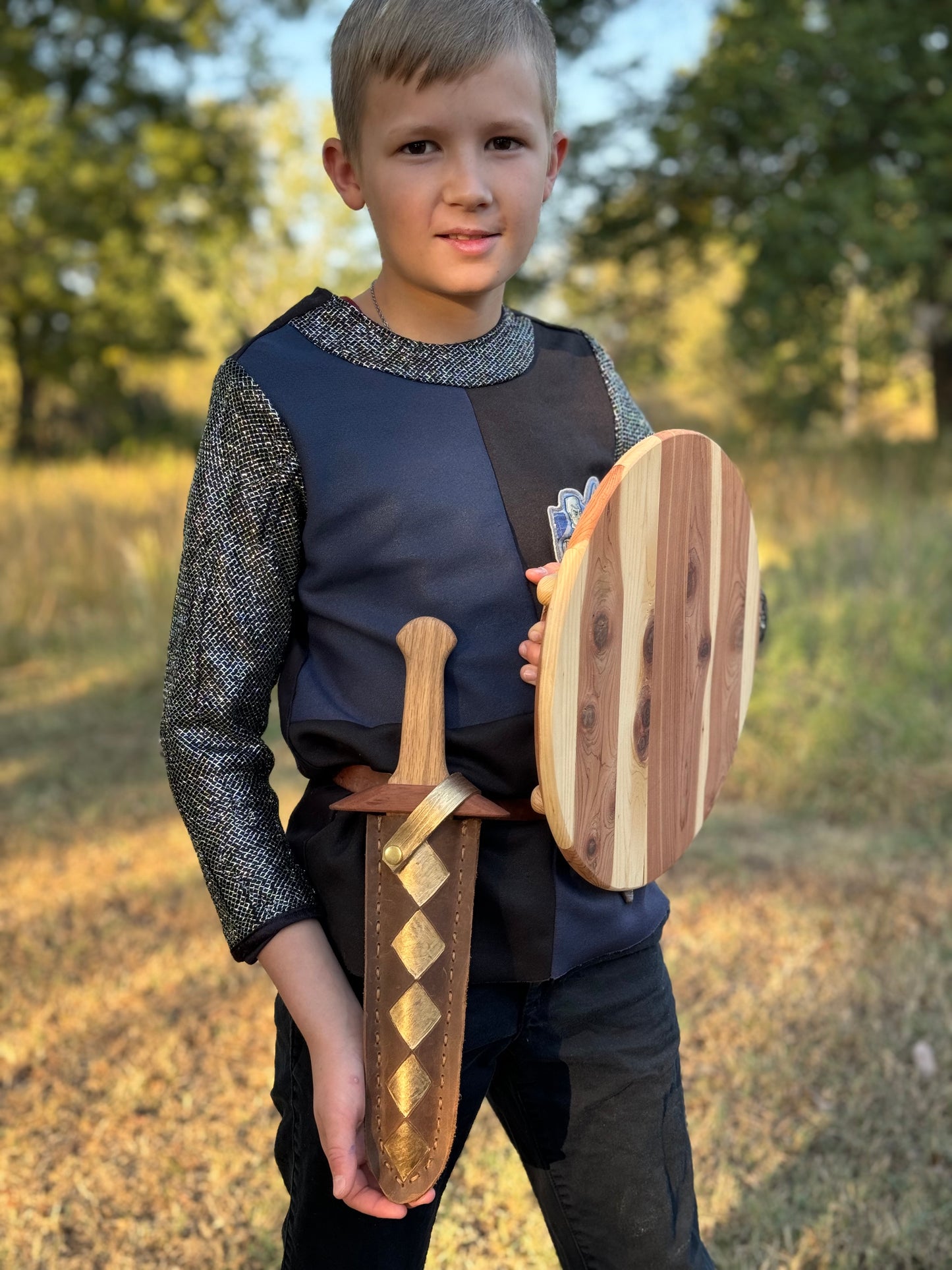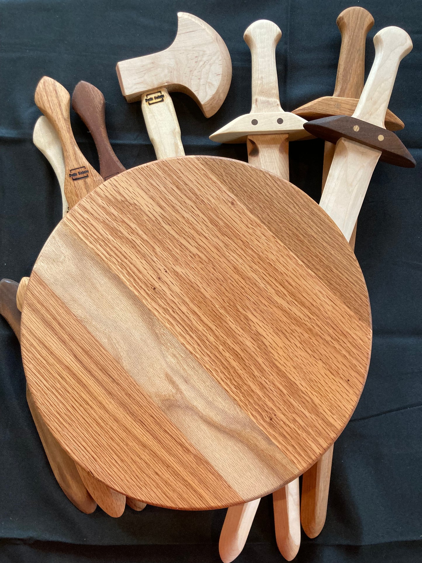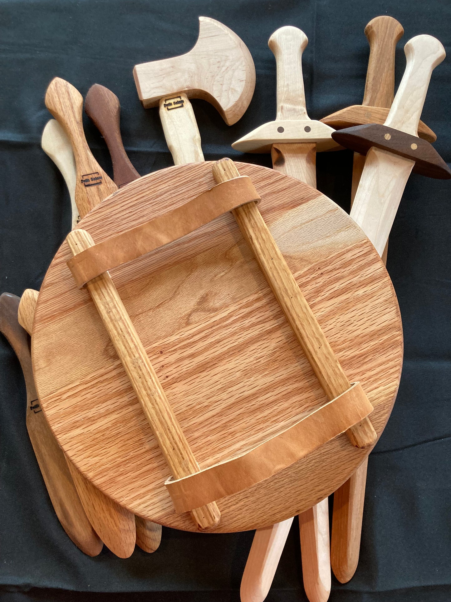 "Protect yourself in style with our Wooden Shields! Made out of solid wood with durable leather straps, these shields provide top-notch protection for any knight. Don't face the battle without one (or two)!